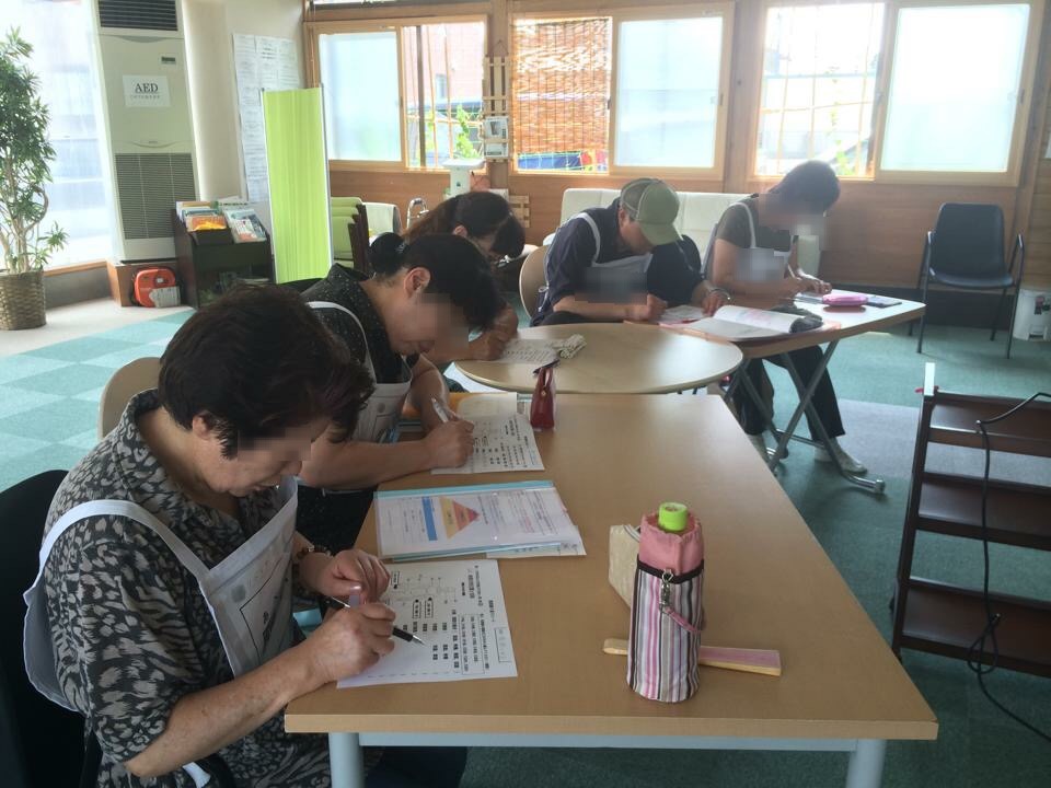 第4回おたからサポーター講座 コミュニティヘルス 2015年07月14日 第4回おたからサポーター講座 2日目・3日目が終了しました。 「振り返りテスト」にチャレンジする受講生の皆さん。 日を増すごとに集中力も高まっていきます。 一般社団法人りぷらすweb sitePR