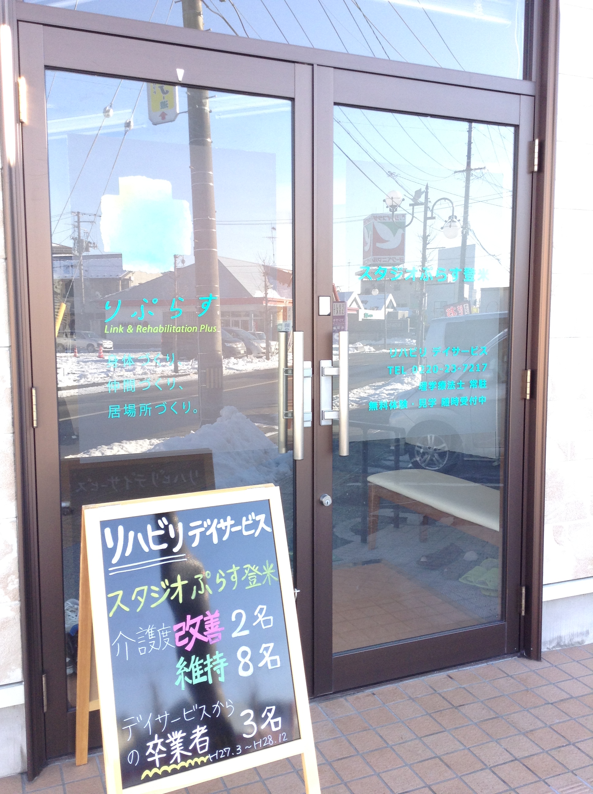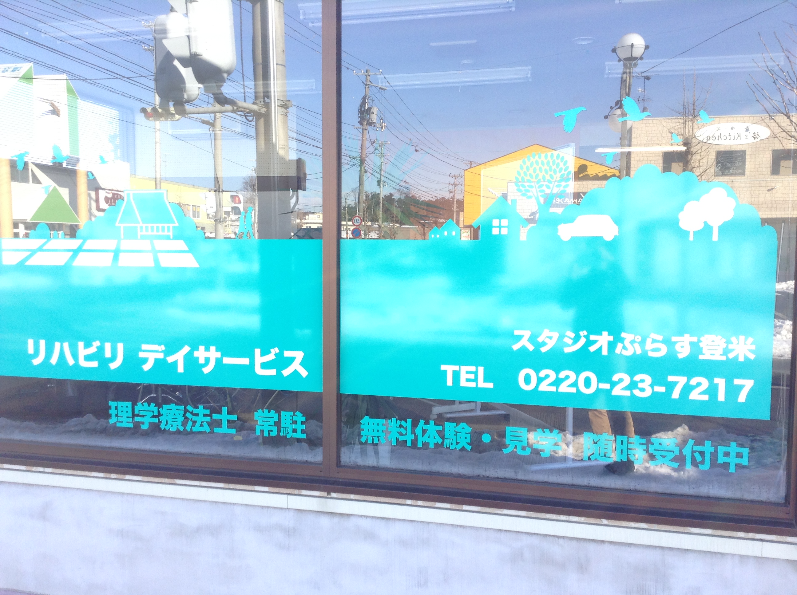 【開所1周年を前に外観をリニューアル】 デイサービス 2016年01月22日 スタジオぷらす登米の外観が変わりました。 今までは大きな窓ガラスにお手製の印刷物を貼っておりました。 今回、スタジオぷらす登米開所1周年を前に、業者へ依頼し写真のようになりました。 これまではやや殺風景でしたが、だいぶ雰囲気が明るくなりました。 また、歩道から施設内が丸見え状態になっていたの改善され、利用者さんからも好評です。 お近くまでいらっしゃることがありましたら、お気軽にお立ち寄りください! スタジオ登米・管理者 理学療法士 小田智樹 一般社団法人りぷらすweb sitePR