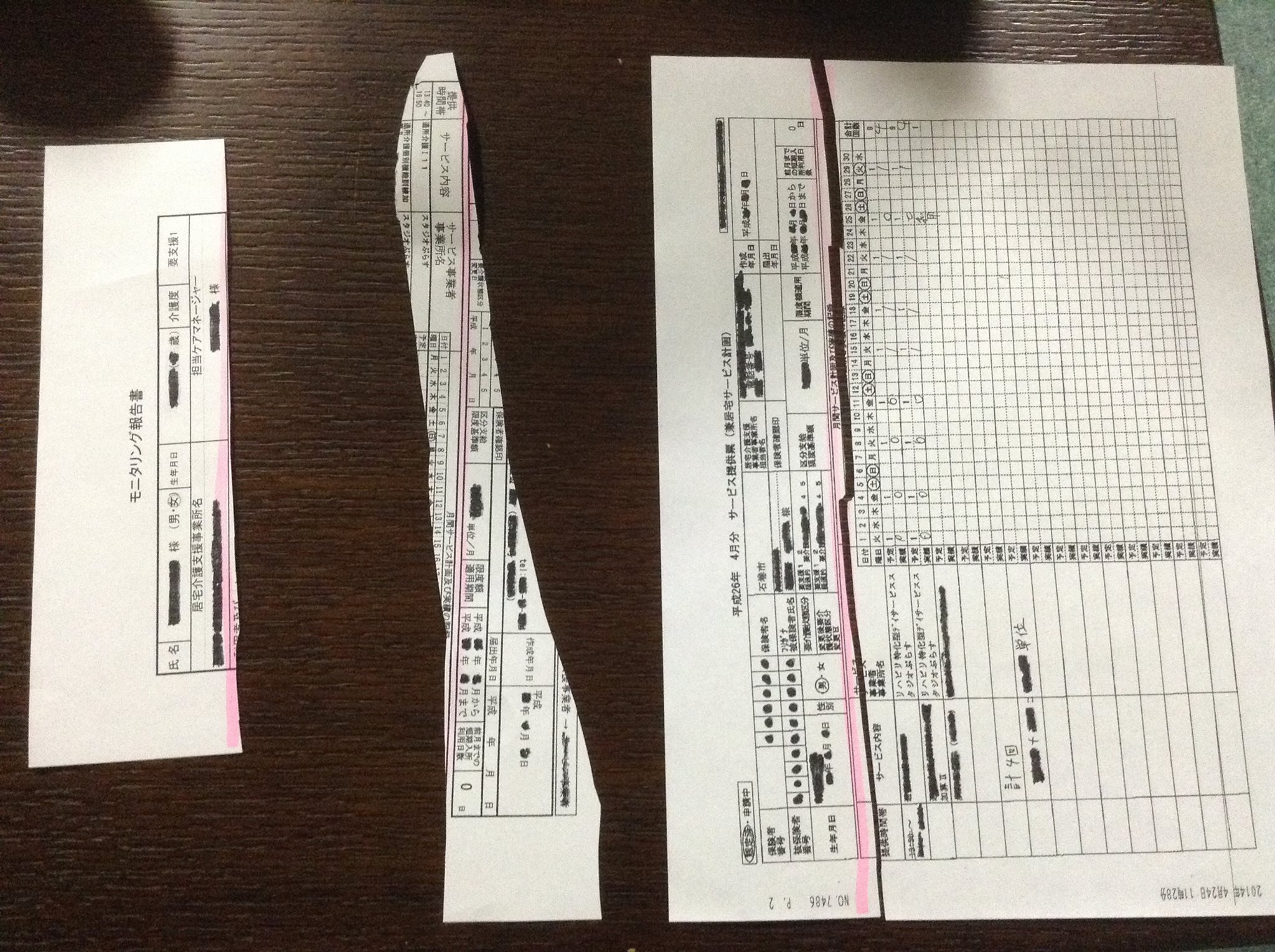 目と手の協調 デイサービス 2014年11月27日 11月の冷たい雨が降りしきる中、 ミカさん(19歳:仮名)は、変わらない元気な笑顔で来所されました。 お喋りが大好きなミカさん。 それと同時に、周りにあるいろいろな物が目についてしまい、 例えば、「1本の線をなぞること」や何かを「じっと見つめる」ことが苦手で、 すぐ他のものに“目移り”してしまいます。 そんなミカさんですが、最近では 線をなぞったり、繋いだりして遊びながら、 少しずつ紙の上の線を見続けることができるようになってきました。 今日は要らなくなったコピー用紙を切ってメモ紙を作りました。 ハサミで線の上を切ってみると、A4用紙の短い辺はほぼ切れるようになりました! A4の長い辺も、よく線を見続けられたり、 前よりもハサミを上手に使えるようになっていました! この後に挑戦した「タオル干し」では、 タオルの下をいつもより上手に整えていました! 元々持っていた能力を上手に発揮できるようになると、 もっともっと“自信”に繋がっていくのだと思います。 少しずつ、ゆっくりと。自信を増やしていきたいですね。 (作業療法士・小山) 一般社団法人りぷらすweb site